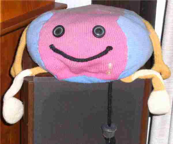 This is the Cuddly Computer that used to sit on the Interdata Model 4. We had T-shirts printed with the Cuddly Computer on the front. Unfortunately it has since been attacked by moths.